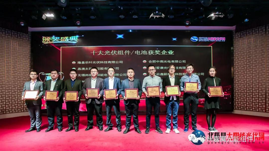2018年10月25日,由北极星电力网、北极星太阳能光伏网、北极星储能网将联合华北电力大学国家大学科技园、上海电力学院、国网电子商务有限公司,联合举办的《第一届北极星“光伏+”研讨会》,在北京隆重举行。徐州嘉寓光能科技有限公司荣膺“十大最受欢迎光伏组件品牌”。